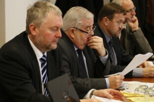Posiedzenie Zarządu Stowarzyszenia Gdański Obszar Metropolitalny. Gdańsk, siedziba GOM przy Długim Targu. Nz. od lewej: Mariusz Wiórek (Wicestarosta Powiatu Tczewskiego), Członek Zarządu GOM Jerzy Żurawicz (Burmistrz Gminy Żukowo), Członek Zarządu GOM Wojciech Dettlaff (Starosta Powiatu Puckiego)