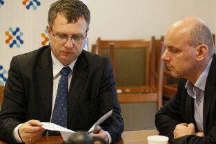 Posiedzenie Zarządu Stowarzyszenia Gdański Obszar Metropolitalny. Gdańsk, siedziba GOM przy Długim Targu. Nz. od lewej: Mariusz Wiórek (Wicestarosta Powiatu Tczewskiego), Członek Zarządu GOM Jerzy Żurawicz (Burmistrz Gminy Żukowo)