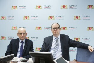 Urząd Miejski w Gdańsku. Spotkanie Zarządu stowarzyszenia Gdański Obszar Metropolitalny. Nz. Prezes GOM Paweł Adamowicz i Wiceprezes GOM Józef Reszke