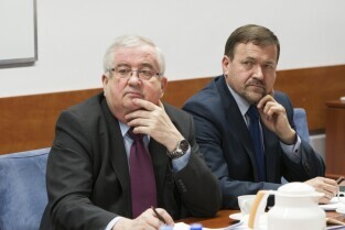 Urząd Miejski w Gdańsku. Spotkanie Zarządu stowarzyszenia Gdański Obszar Metropolitalny. Nz. od lewej: Jerzy Żurawicz i Wojciech Dettlaff
