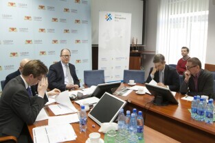 Urząd Miejski w Gdańsku. Spotkanie Zarządu stowarzyszenia Gdański Obszar Metropolitalny. Nz. Józef Puczyński