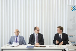 Gdański Inkubator Przedsiębiorczości STARTER. Spotkanie Zarządu stowarzyszenia Gdański Obszar Metropolitalny. Nz. od lewej: Jacek Michalski (Burmistrz Nowego Dworu Gdańskiego), Józef Puczyński (Starosta Tczewski) i Wojciech Dettlaff (Starosta Pucki)