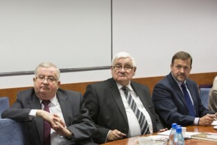 Urząd Miejski w Gdańsku. Spotkanie Zarządu stowarzyszenia Gdański Obszar Metropolitalny. Nz. od lewej: Jerzy Żurawicz, Józef Puczyński, Wojciech Dettlaff