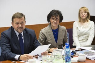 Urząd Miejski w Gdańsku. Spotkanie Zarządu stowarzyszenia Gdański Obszar Metropolitalny. Nz. Hanna Brejwo i Wojciech Dettlaff