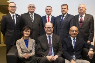 Urząd Miejski w Gdańsku. Spotkanie Zarządu stowarzyszenia Gdański Obszar Metropolitalny. Nz. Hanna Brejwo, Paweł Adamowicz, Józef Reszke; z tyłu: Marcin Skwierawski, Józef Puczyński, Jacek Michalski, Wojciech Dettlaff, Jerzy Żurawicz