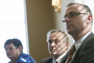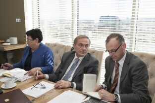 Spotkanie Zarządu Związku Zintegrowanych Inwestycji Terytorialnych (ZIT) Metropolii Trójmiejskiej. Gdańsk, Olivia Business Centre. Nz. od lewej: Burmistrz Rumi Elżbieta Rogala-Kończak, Prezydent Gdyni Wojciech Szczurek i Wiceprezydent Gdyni Michał Guć