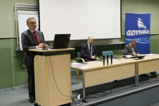 Konferencja naukowa "Zarządzanie Rozwojem Obszarów Metropolitalnych". Gdynia, Pomorski Park Naukowo-Technologiczny. Nz. przemawia Kierownik Katedry Urbanistyki i Planowania Regionalnego Politechniki Gdańskiej dr Piotr Lorens