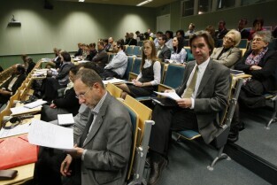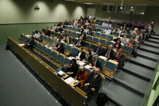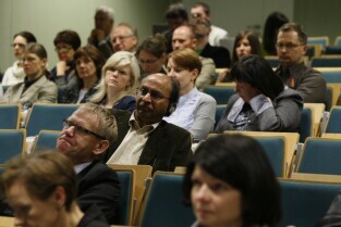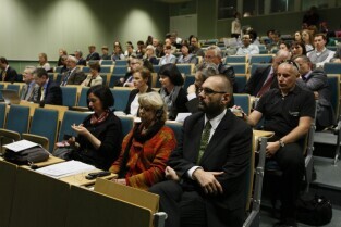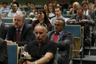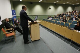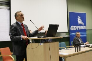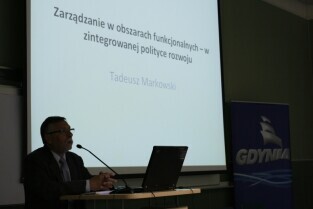 Konferencja naukowa "Zarządzanie Rozwojem Obszarów Metropolitalnych". Gdynia, Pomorski Park Naukowo-Technologiczny. Nz. wykład prowadzi Prezes Towarzystwa Urbanistów Polskich Tadeusz Markowski