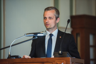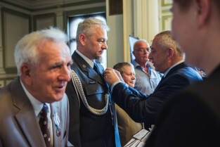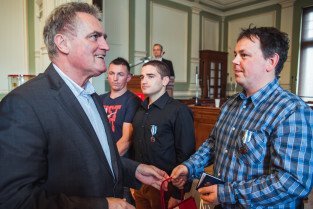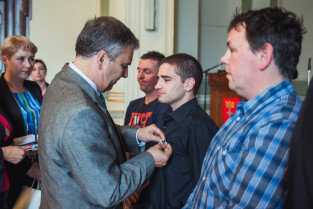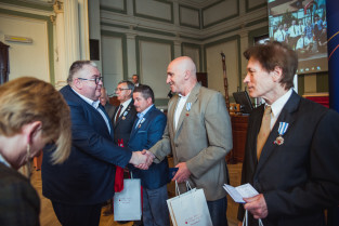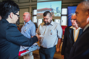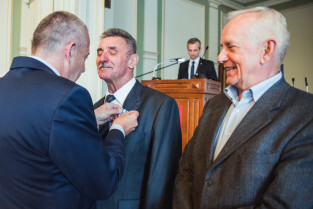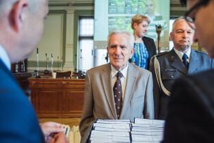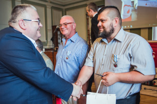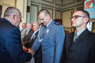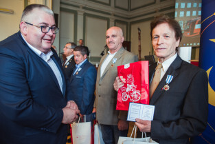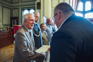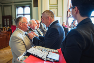 Gdańsk. Rada Miasta. "Zasłużony dla zdrowia narodu" - wręcznie odznak krwiodawcom. Nz. Sławomir Ambroziak