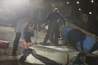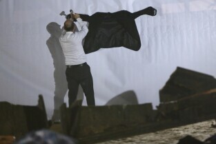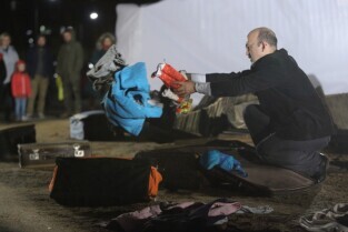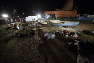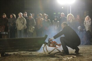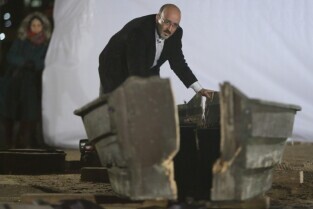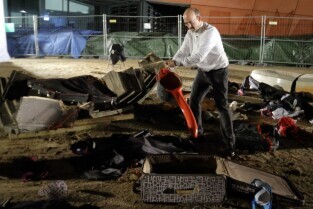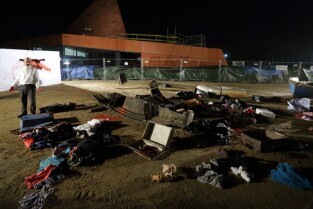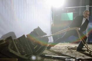 Gdańsk, teren budowy Muzeum II Wojny Światowej. Zatonięcie Europy - performance Fernando Bravo.
