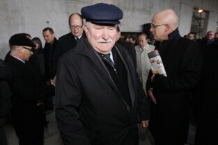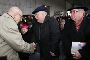 Gdańsk. Uroczystość zawieszenia wiechy na budowie Europejskiego Centrum Solidarności. Nz. były Prezydent RP Lech Wałęsa