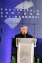 Gdańsk. Uroczystość zawieszenia wiechy na budowie Europejskiego Centrum Solidarności. Nz. Marszałek Woj. Pomorskiego Mieczysław Struk