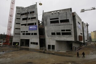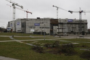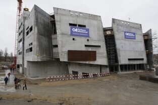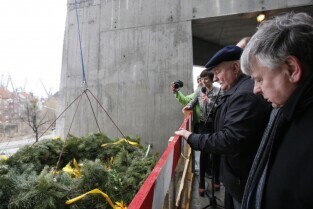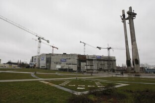 Gdańsk. Uroczystość zawieszenia wiechy na budowie Europejskiego Centrum Solidarności.