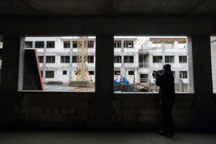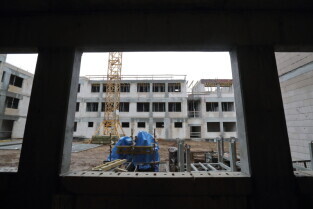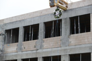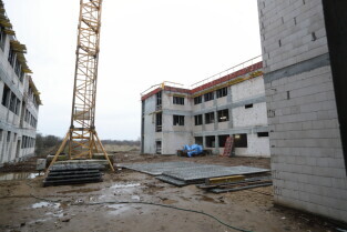 Gdańsk. Zawieszenie wiechy na budynku pierwszej Metropolitalnej Szkoły Podstawowej w Kowalach.