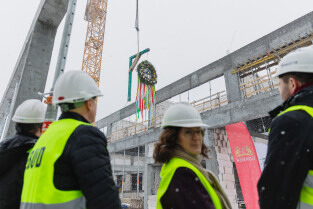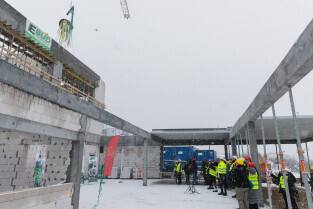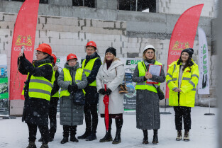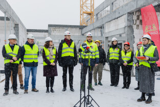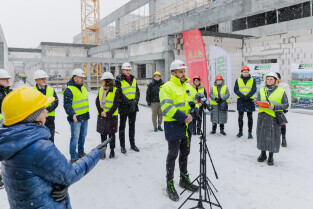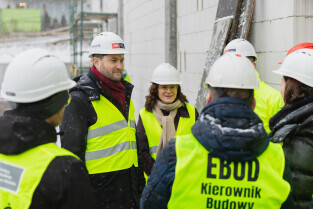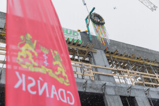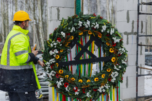 Gdańsk. Zawieszenie wiechy na szkole przy Morenowym Wzgórzu. Nz. Piotr Grzelak, zastępca prezydent ds. zrównoważonego rozwoju i gospodarki