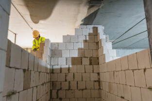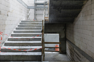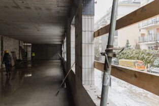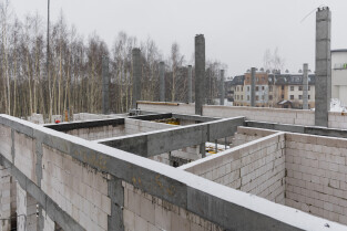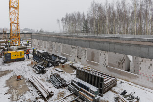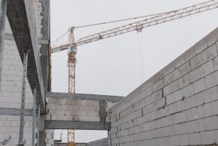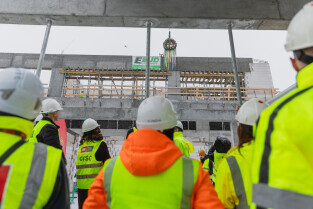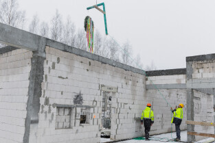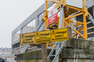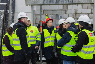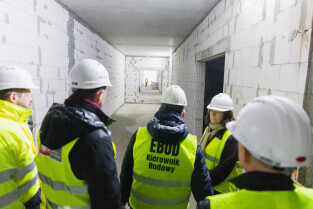 Gdańsk. Zawieszenie wiechy na szkole przy Morenowym Wzgórzu. Nz. Piotr Kozber, kierownik budowy, firma EBUD