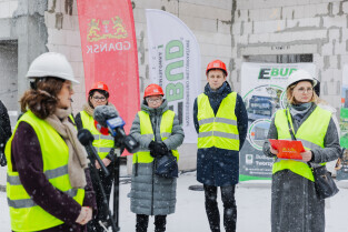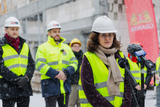Gdańsk. Zawieszenie wiechy na szkole przy Morenowym Wzgórzu. Nz. Aleksandra Dulkiewicz, prezydent Gdańska