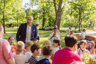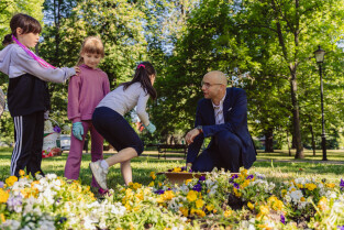 Gdańsk. “Zbrataj się z bratkiem, przygarnij stokrotkę” w Parku Zielonym przy ul. Marii Skłodowskiej-Curie. Nz. Piotr Kryszewski, zastępca prezydenta Gdańska ds. usług komunalnych