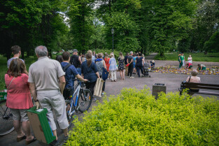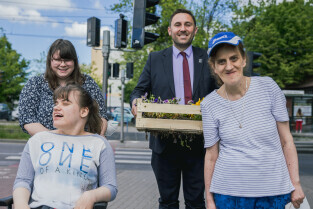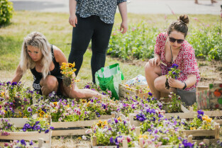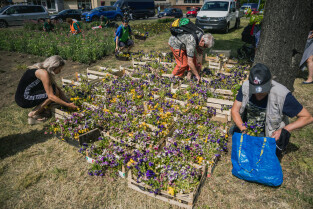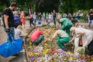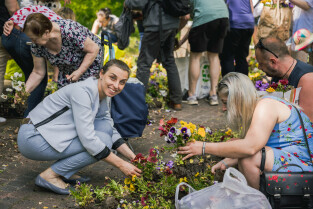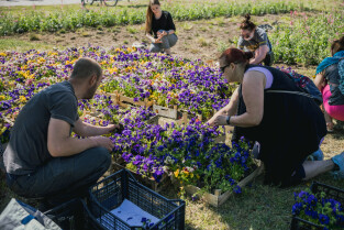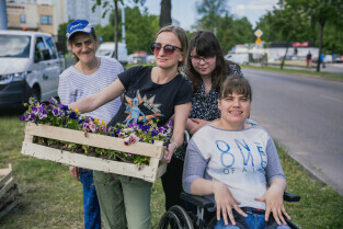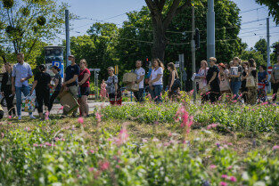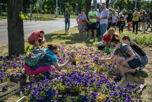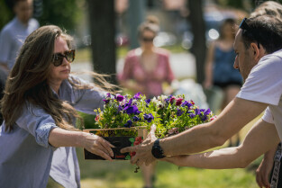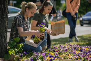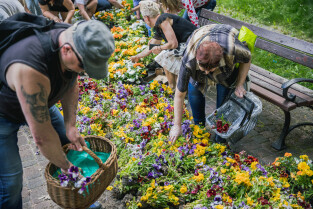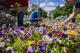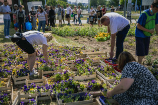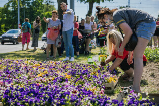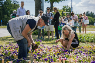 Gdańsk, ul. Pomorska. "Zbrataj się z bratkiem, przygarnij stokrotkę"