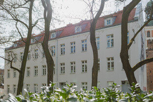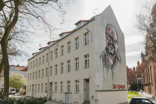 Gdańsk, ul. Mniszki. Zdjęcia wyremontowanej kamienicy z muralem P.Adamowicza