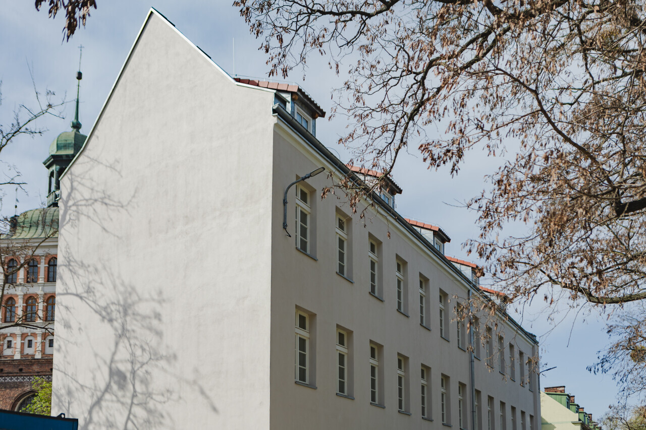 Zdjęcia wyremontowanej kamienicy z muralem P.Adamowicza