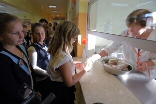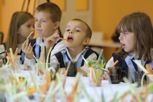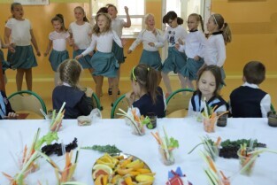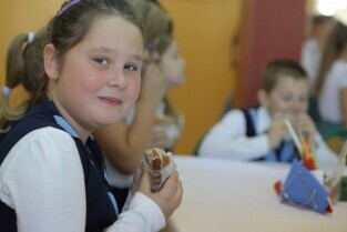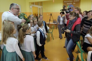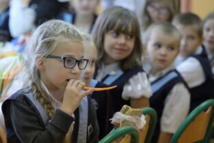 Szkoła Podstawowa Nr 16 w Gdańsku. Wiceprezydent Gdańska ds. polityki społecznej Piotr Kowalczuk razem z uczniami przygotował pod okiem specjalisty dietetyka pełnowartościową, energetyczną kanapkę. Nz Wiceprezydent Gdańska Piotr Kowalczuk.