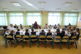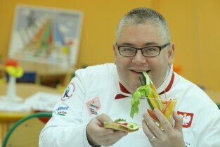 Szkoła Podstawowa Nr 16 w Gdańsku. Wiceprezydent Gdańska ds. polityki społecznej Piotr Kowalczuk razem z uczniami przygotował pod okiem specjalisty dietetyka pełnowartościową, energetyczną kanapkę.