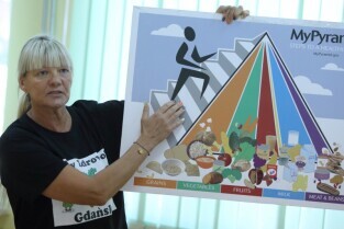 Szkoła Podstawowa Nr 16 w Gdańsku. Wiceprezydent Gdańska ds. polityki społecznej Piotr Kowalczuk razem z uczniami przygotował pod okiem specjalisty dietetyka pełnowartościową, energetyczną kanapkę. Nz Dietetyk i terapeuta ruchowy Mara Fall-Ławryniuk.