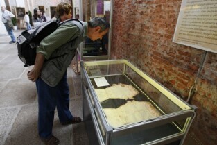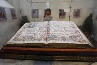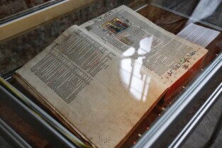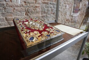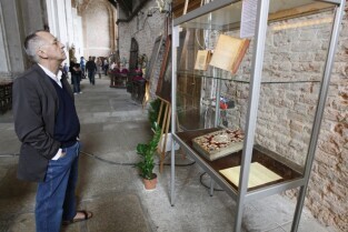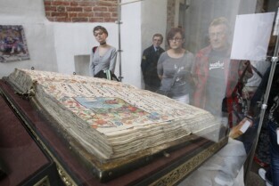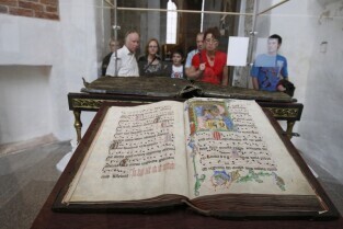 Wystawa "Ze skarbca Karmelitów", na której prezentowane są eksponaty związane z zakonem Karmelitów.Gdańsk Stare Miasto, kościół św. Katarzyny. Nz. Graduał karmelitański - rękopis ojca Stanisława ze Stolca z 1644 r. - jedna z najbogatszych w Europie ksiąg liturgicznych