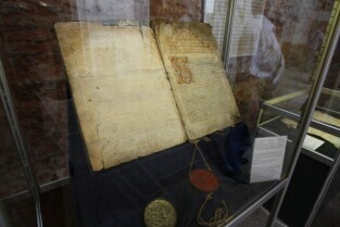 Wystawa "Ze skarbca Karmelitów", na której prezentowane są eksponaty związane z zakonem Karmelitów.Gdańsk Stare Miasto, kościół św. Katarzyny