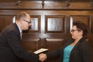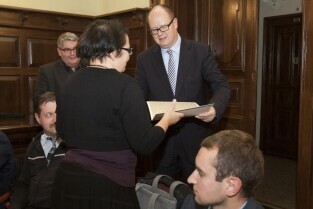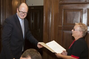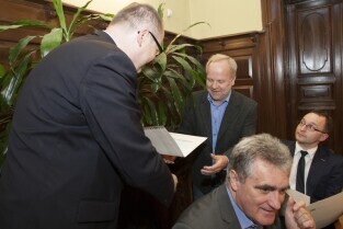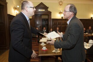 Pierwsze spotkanie Zespołu Konsultacyjnego Budżetu Obywatelskiego 2014, podczas którego Prezydent Gdańska Paweł Adamowicz wręczył oficjalne nominacje. Gdańsk, Nowy Ratusz