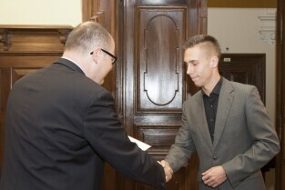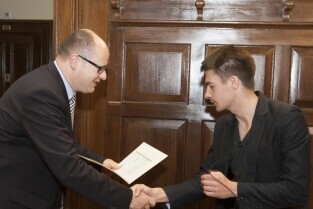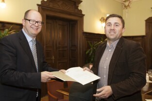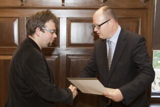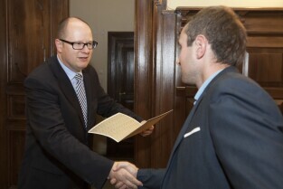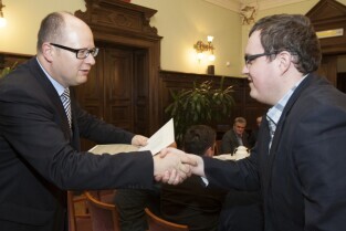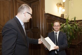 Pierwsze spotkanie Zespołu Konsultacyjnego Budżetu Obywatelskiego 2014, podczas którego Prezydent Gdańska Paweł Adamowicz wręczył oficjalne nominacje. Gdańsk, Nowy Ratusz. Nz. po prawej Radny Miasta Gdańska Marcin Skwierawski