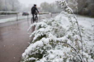 Opady śniegu i powrót zimy w maju. Gdańsk, Ołowianka