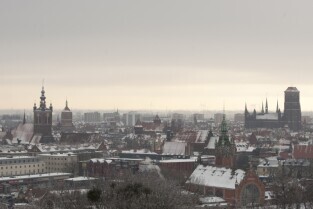 Gdańsk, Góra Gradowa. Zimowa panorama Starego i Głównego Miasta