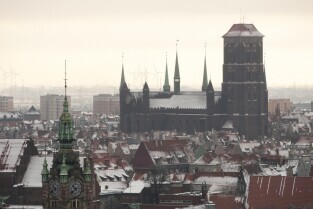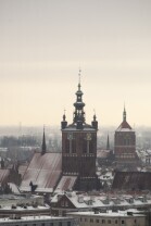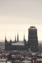 Gdańsk, Góra Gradowa. Zimowa panorama Starego i Głównego Miasta. Kościół Mariacki