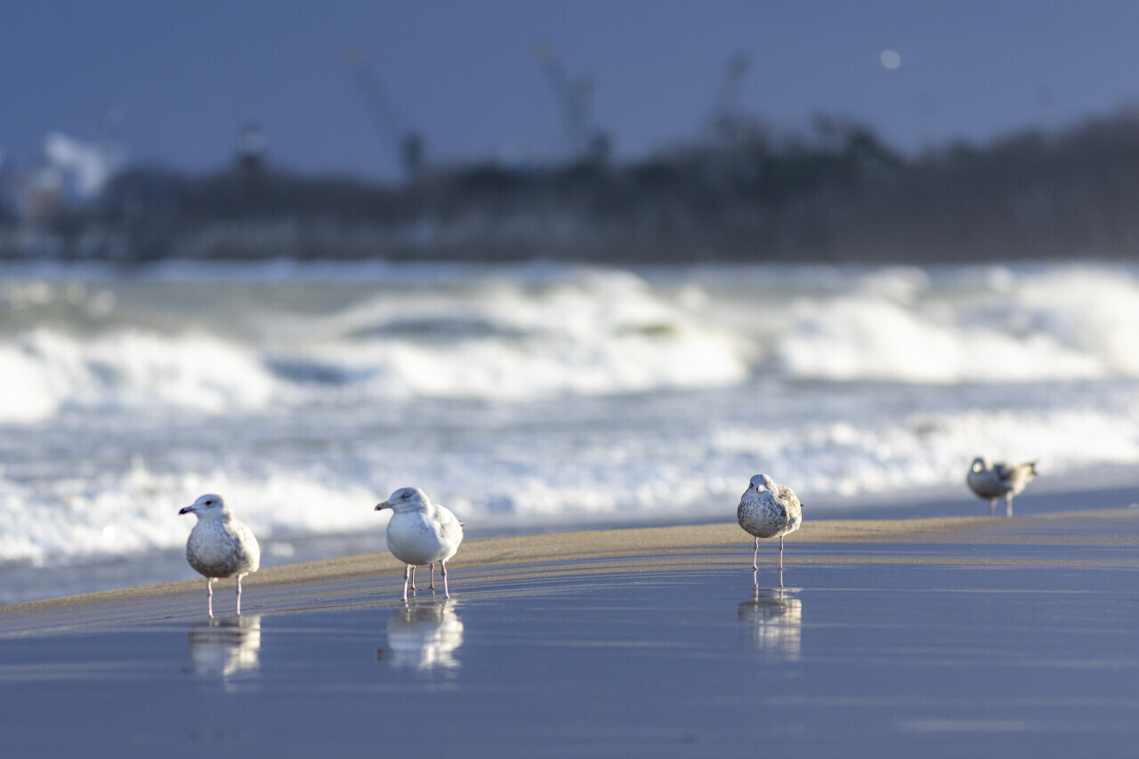 Gdańsk. Zimowe zdjęcia molo w Brzeźnie i pobliskiej plaży. Niska temperatura i silny wiatr nie zniechęcił spacerowiczów do wizyty nad morzem.