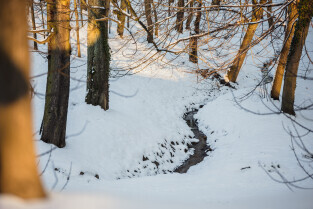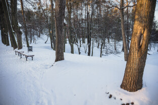 Gdańsk. Zimowy spacer w gdańskiim parku. Nz. Park w Królewskiej Dolinie