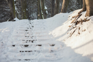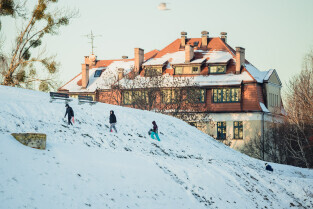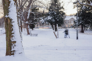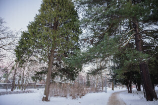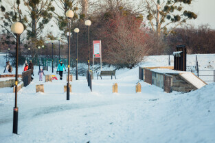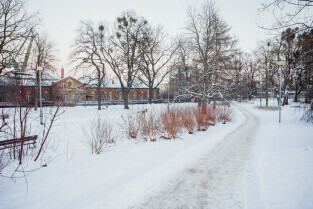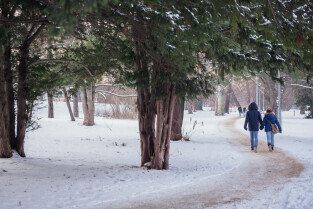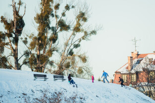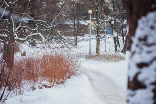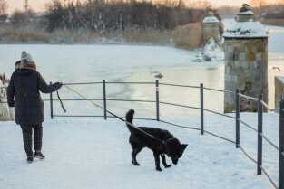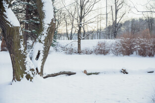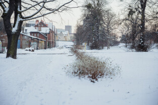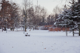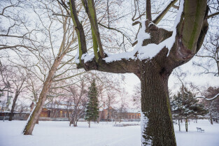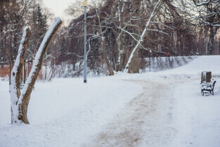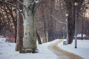 Gdańsk. Zimowy spacer w gdańskiim parku. Nz. Park Steffensów