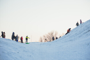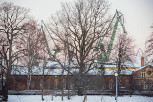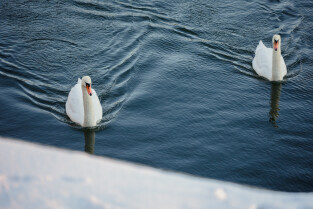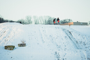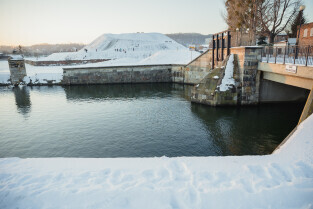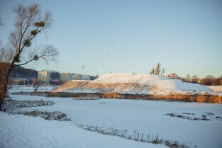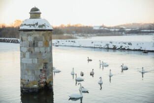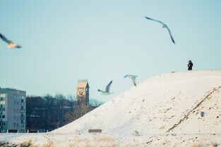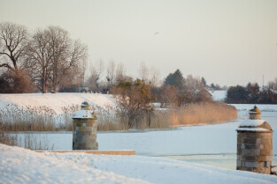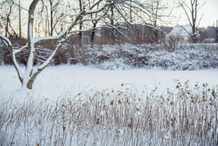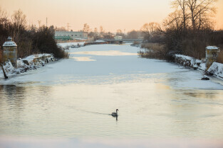 Gdańsk. Zimowy spacer w gdańskiim parku. Nz. Park nad Opływem Motławy
