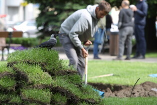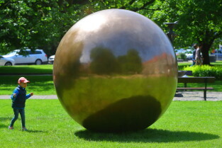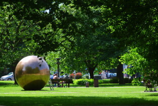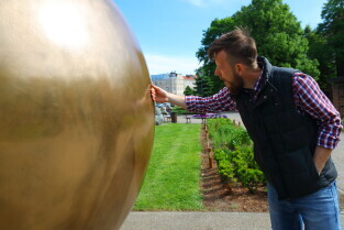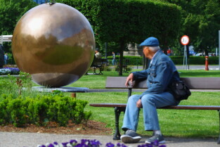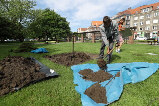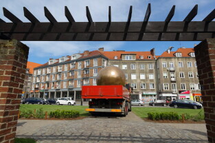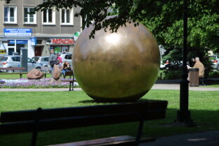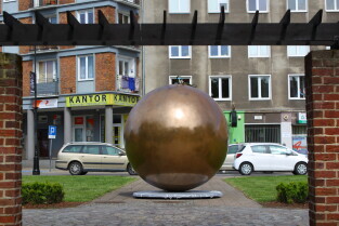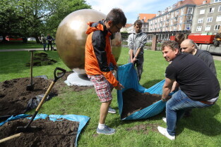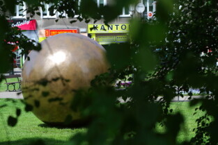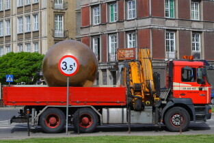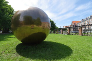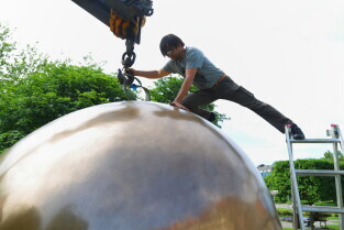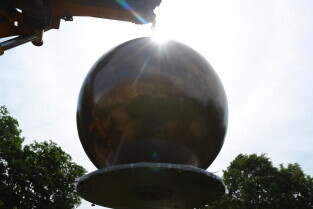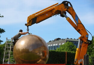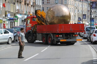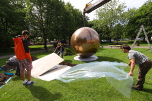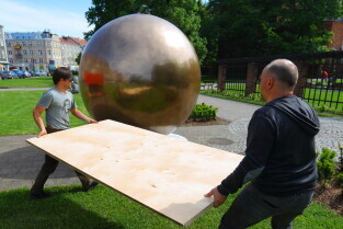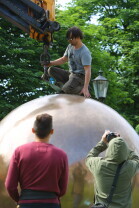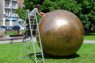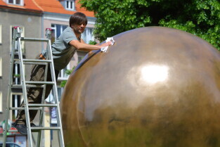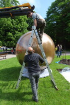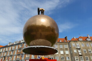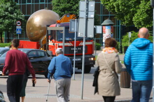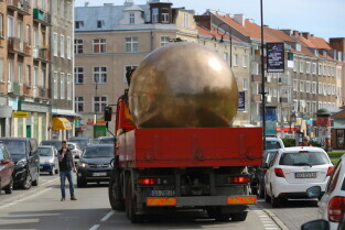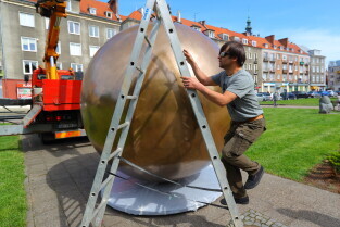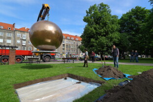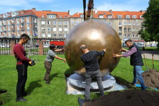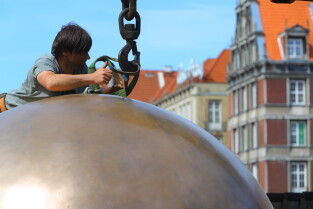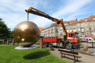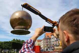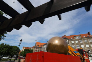 Gdańsk. Montaż Złotej Kuli na Placu Kobzdeja ("złota kampania" Muzeum Narodowego w Gdańsku".