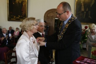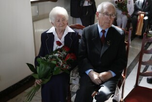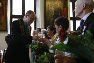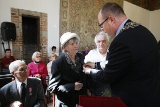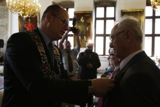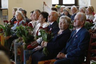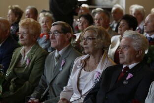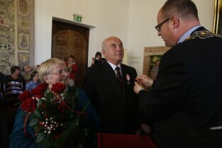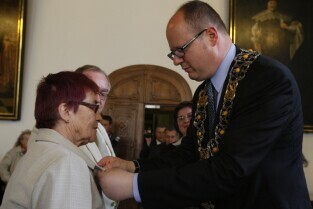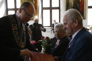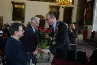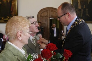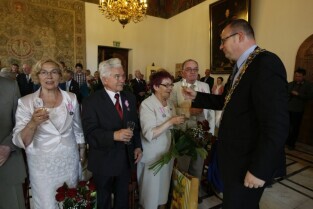 Jubileusz Par Małżeńskich - "Złote Gody", podczas których Prezydent Gdańska Paweł Adamowicz wręczył medale za 65-, 60- i 50-lecie pożycia małżeńskiego. Gdańsk, Ratusz Głównomiejski