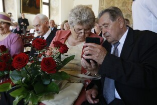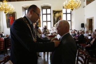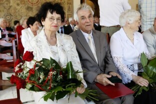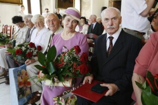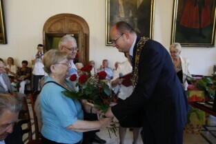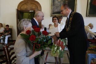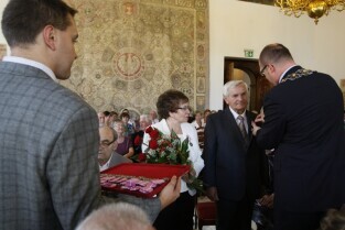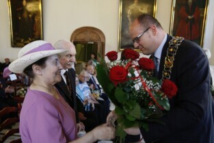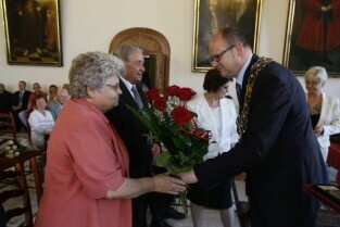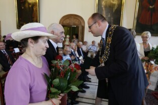 Jubileusz Par Małżeńskich - "Złote Gody", podczas których Prezydent Gdańska Paweł Adamowicz wręczył medale za 65-, 60- i 50-lecie pożycia małżeńskiego. Gdańsk, Ratusz Głównomiejski