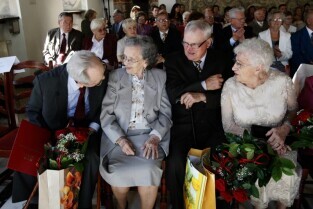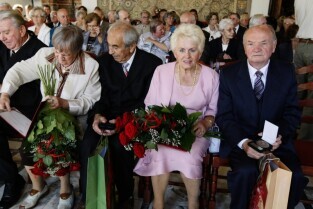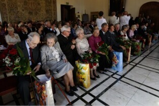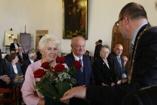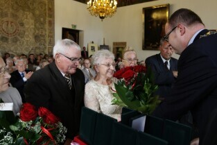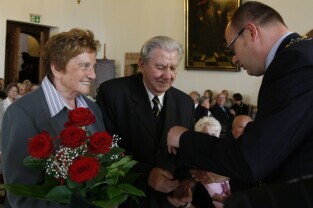 Jubileusz Par Małżeńskich - "Złote Gody", podczas których Prezydent Gdańska Paweł Adamowicz wręczył medale za 65-, 60- i 50-lecie pożycia małżeńskiego. Gdańsk, Ratusz Głównomiejski