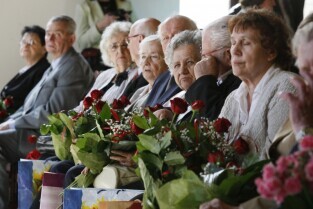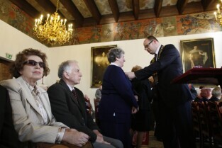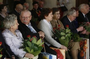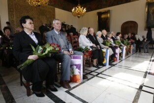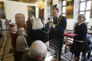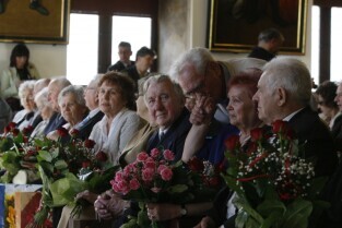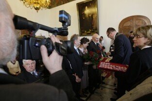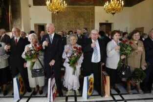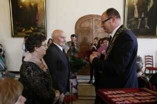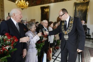 Jubileusz Par Małżeńskich - "Złote Gody", podczas których Prezydent Gdańska Paweł Adamowicz wręczył medale za długoletnie pożycie małżeńskie. Gdańsk, Ratusz Głównomiejski
