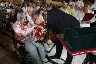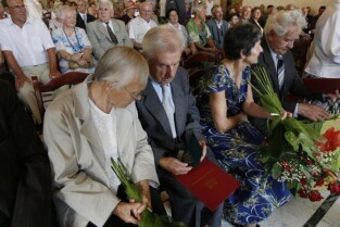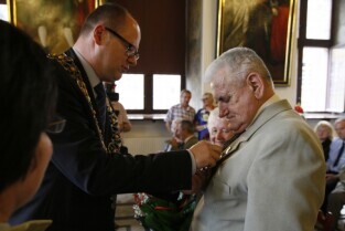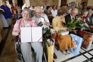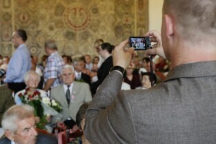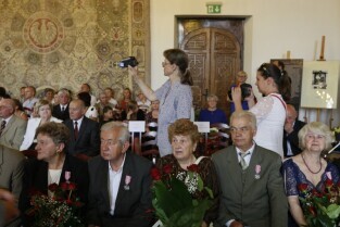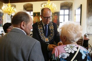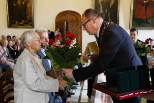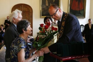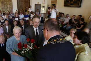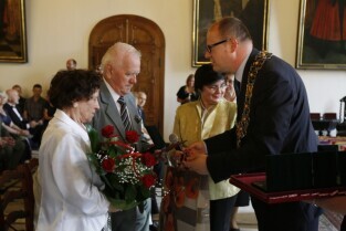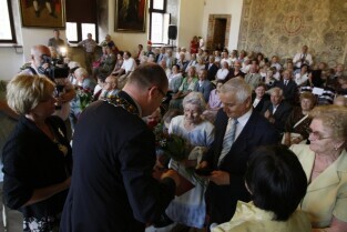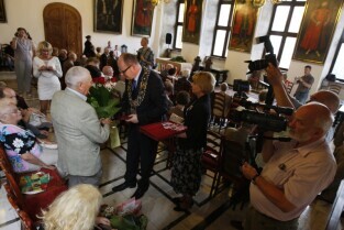 Jubileusz Par Małżeńskich - "Złote Gody", podczas których Prezydent Gdańska Paweł Adamowicz wręczył medale za długoletnie pożycie małżeńskie. Gdańsk, Ratusz Głównomiejski