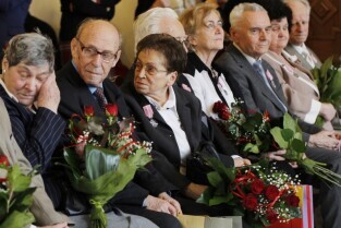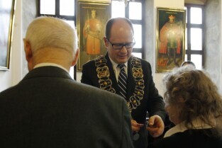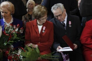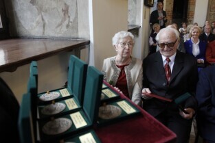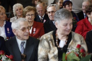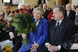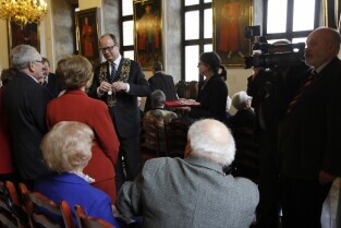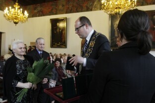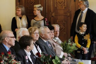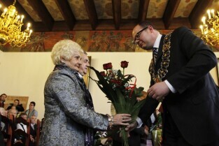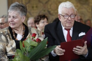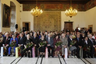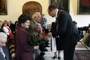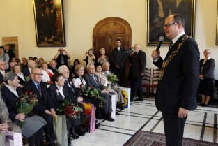 Jubileusz Par Małżeńskich - "Złote Gody", podczas których Prezydent Gdańska Paweł Adamowicz wręczył medale za długoletnie pożycie małżeńskie. Gdańsk, Ratusz Głównomiejski