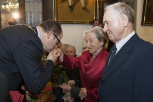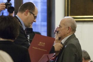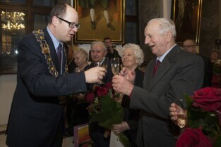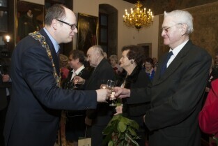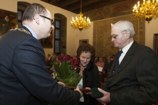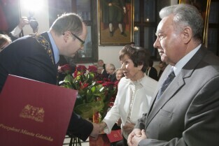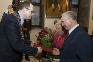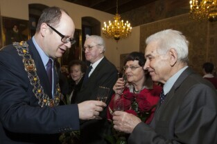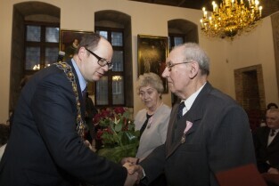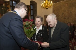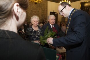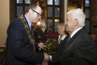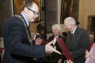 Jubileusz Par Małżeńskich - "Złote Gody", podczas których Prezydent Gdańska Paweł Adamowicz wręczył medale za długoletnie pożycie małżeńskie. Gdańsk, Ratusz Głównomiejski