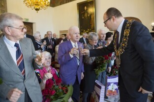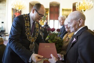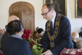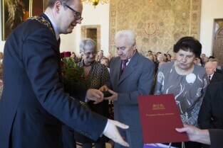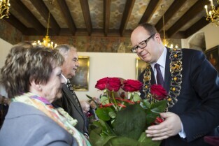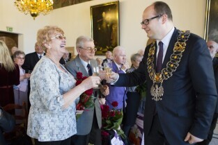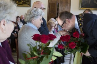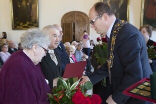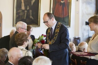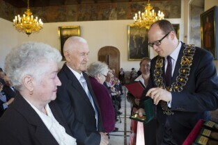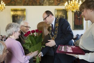Jubileusz Par Małżeńskich - "Złote Gody", podczas których Prezydent Gdańska Paweł Adamowicz wręczył medale za długoletnie pożycie małżeńskie. Gdańsk, Ratusz Głównomiejski
