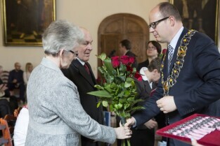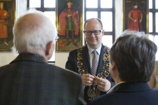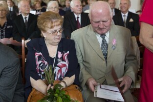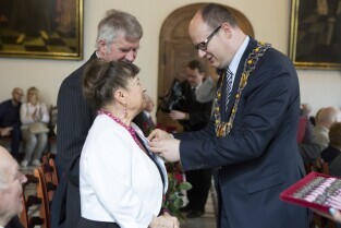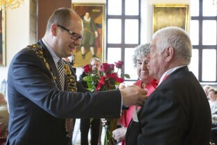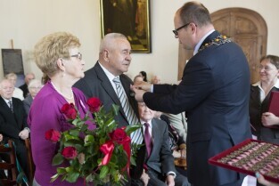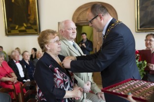 Jubileusz Par Małżeńskich - "Złote Gody", podczas których Prezydent Gdańska Paweł Adamowicz wręczył medale za długoletnie pożycie małżeńskie. Gdańsk, Ratusz Głównomiejski
