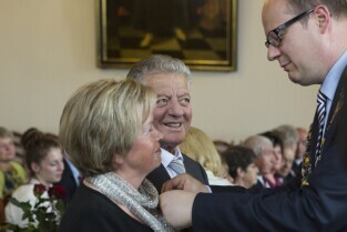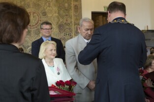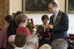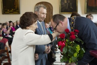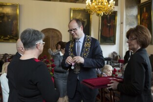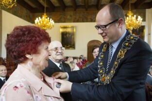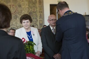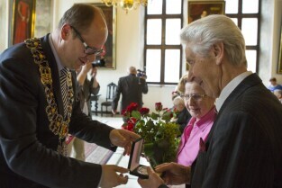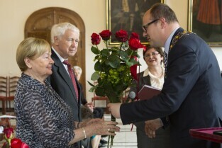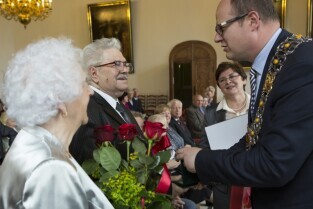 Jubileusz Par Małżeńskich - "Złote Gody", podczas których Prezydent Gdańska Paweł Adamowicz wręczył medale za długoletnie pożycie małżeńskie. Gdańsk, Ratusz Głównomiejski